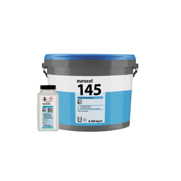 Eurocol 145 EUROMIX WOOD EXTRA is een hoogwaardige, tweecomponentige (A + B) PU-parquetlijm, ontwikkeld voor het vast verlijmen van houten vloer elementen. Dankzij de uitstekende hechting, lange verwerkingstijd en snelle overschuurbaarheid is het dé keuze voor zowel kleine als grote vloerprojecten.