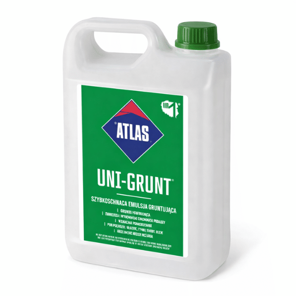 De Atlas Uni-Grunt is een snelwerkende voorstrijk geschikt voor zuigende ondergronden. De volgende bewerking kan doorgaans al na 15 minuten plaatsvinden voor gipsproducten en tegellijmen, en na 2 uur voor cementvloeren en egaline. De werkelijke tijd is echter afhankelijk van de luchtvochtigheid en temperatuur. De voorstrijk dringt diep in de ondergrond door, wat de hechting versterkt. Na droging is het product kleurloos.