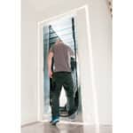 Daarnaast is de stofstop geschikt voor deuropeningen tot 1 meter breed, waardoor hij in vrijwel elke standaard binnendeur past. Dankzij het heldere en sterke HDPE-kunststof behoud je goed zicht op de andere ruimte, terwijl de afscherming toch een volledig dichte barrière vormt tegen stof en geur.