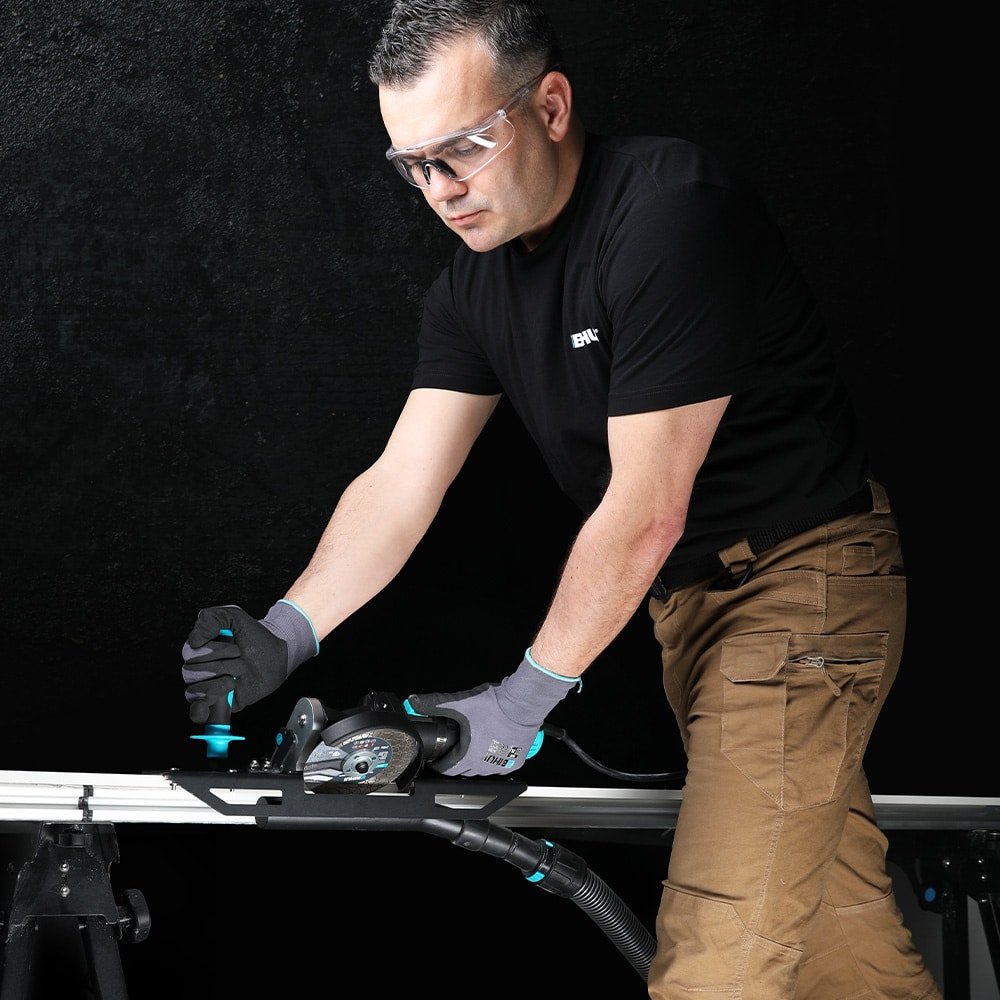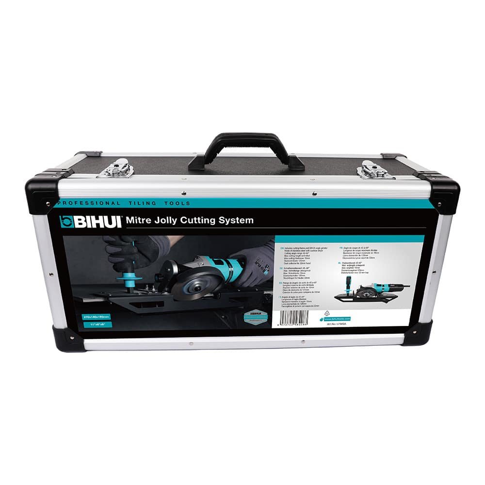 BIHUI Jolly Verstek System 1200 Watt wordt geleverd inclusief snijframe en BIHUI haakse slijper. Het frame is gemaakt van RVS waar een strip op is gemonteerd die beschadiging van tegeloppervlakte tegen gaat. De in te stellen zaaghoek heeft een bereik van 45 tot 48 graden. Dus net meer verstek zagen als nodig is hierdoor mogelijk.