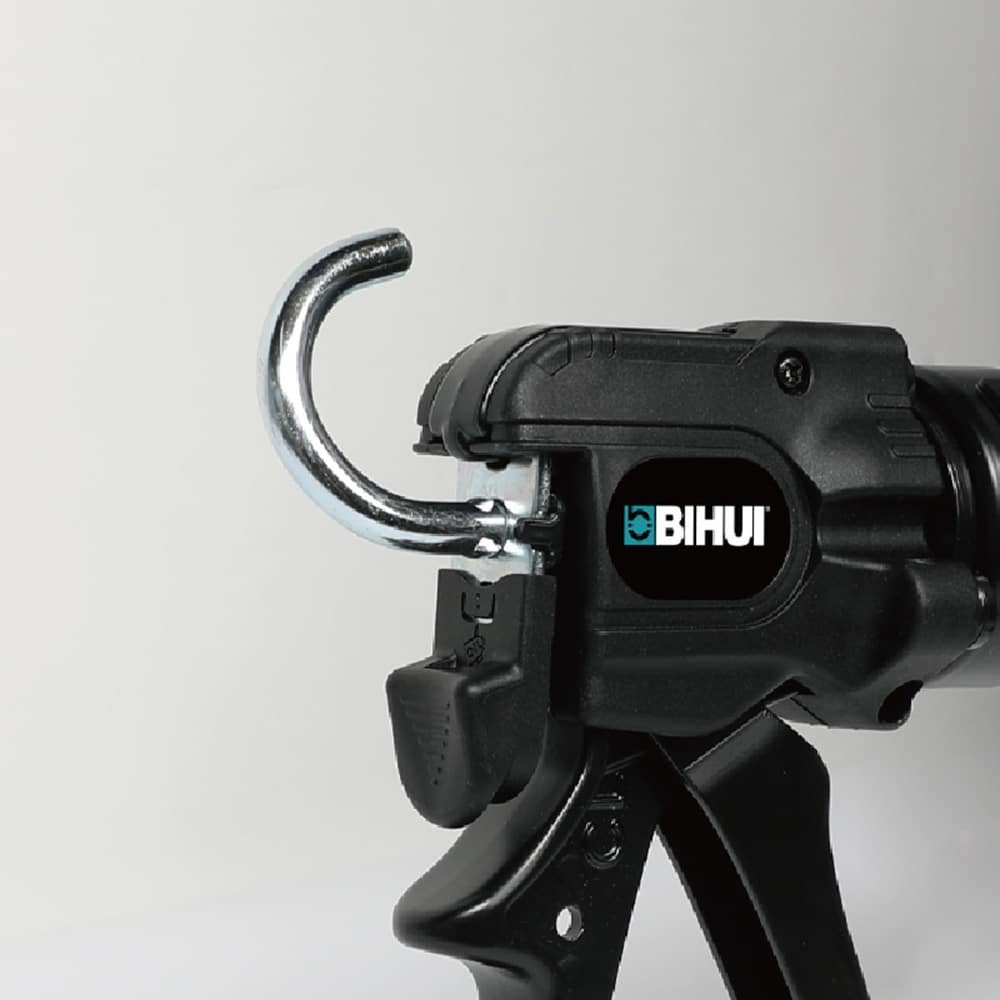 De kitspuit is uitgerust met een aluminium handgreep en een stalen trekker, ontworpen voor zowel comfort als duurzaamheid. Het gepatenteerde 360° draaibare staal zorgt ervoor dat u in elke hoek kunt werken, terwijl het ontwerp zonder openingen de duurzaamheid verhoogt en onderhoud vereenvoudigt.