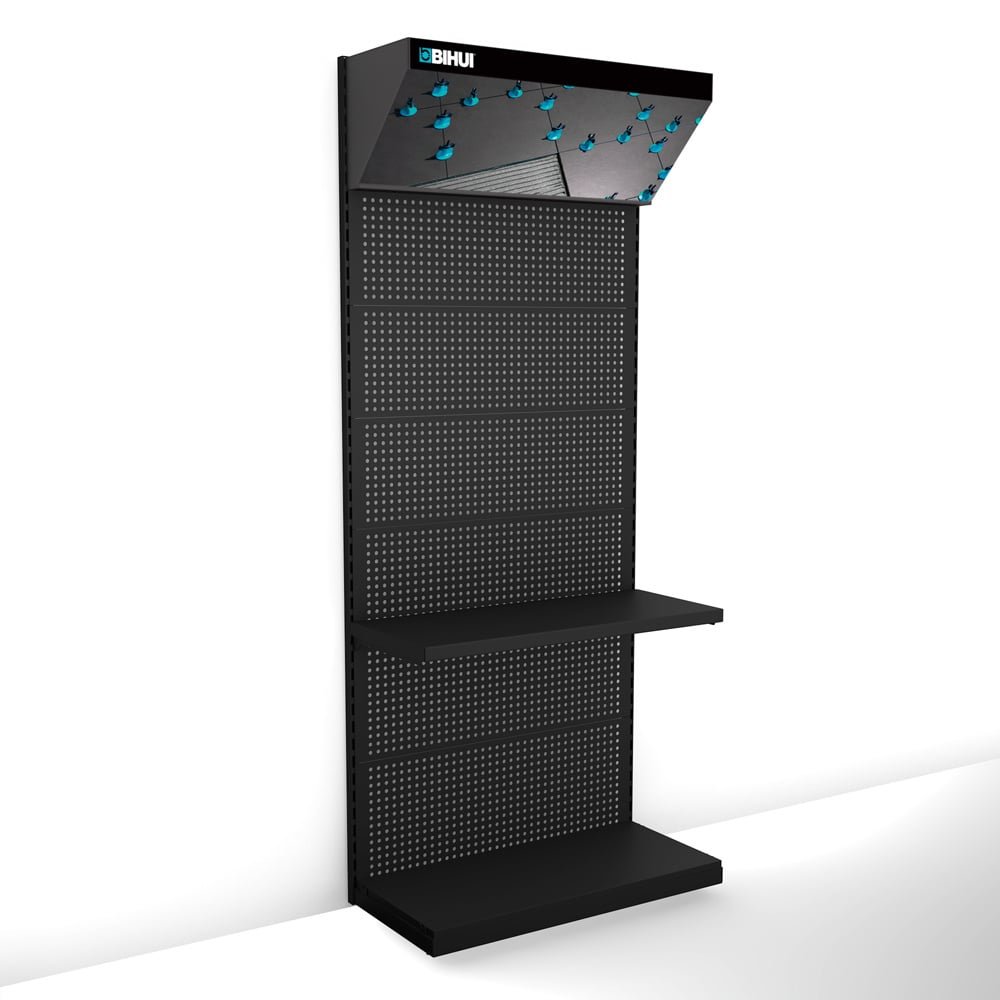Compleet geleverde stelling inclusief legplank en een opvallende display aan de bovenkant. De stellingen zijn eenvoudig en snel in elkaar te zetten. De stelling heeft een hoogte van 240 cm en een breedte van 100 cm. Met een diepte van 50 cm is er altijs een plekje te vinden voor deze presentatie. Verder zijn de stellingen eenvoudig te koppelen waardoor een grote opvallende wand ontstaat.