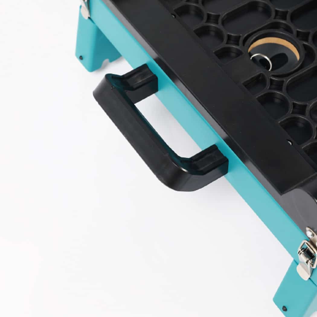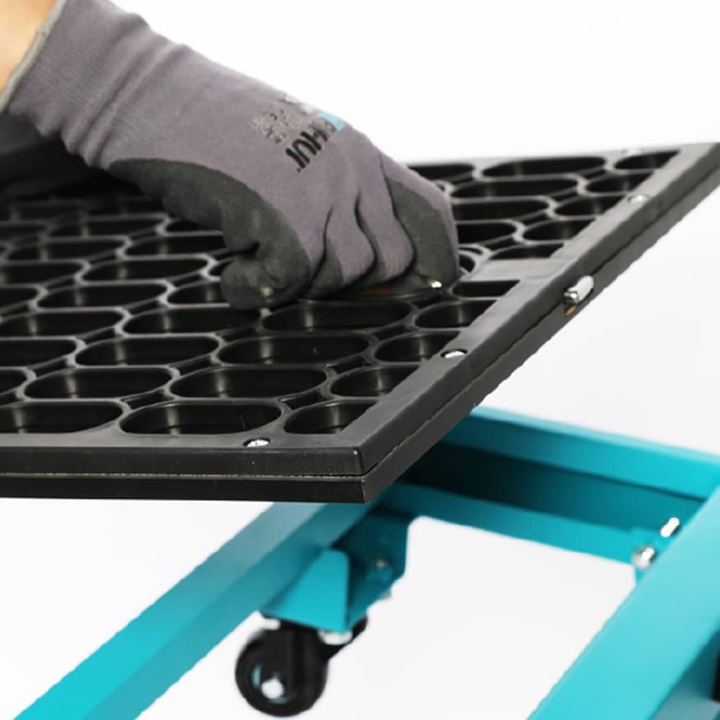 Daarmee verandert de werktafel eenvoudig van een robuuste werkbank naar een handige transporttrolley. Vervolgens kunt u materialen veilig en snel naar de juiste plek verplaatsen. Bovendien blijft de tafel dankzij de sterke constructie stabiel onder zware belasting. Hierdoor kunt u met vertrouwen grotere tegels en machines ondersteunen.