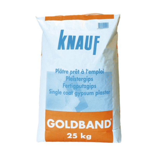 Knauf Goldband is een gipspleister voor handmatige verwerking in één laag, ideaal voor steenachtige wanden en plafonds binnen, zoals keukens en badkamers. De fijne vulstoffen zorgen voor een glad eindresultaat, en de pleister heeft een hoge opbrengst, lange verwerkingstijd en is geschikt voor laagdiktes vanaf 10 mm. Voor kleinere klussen is Goldband Quick beschikbaar. Gebruik Goldband in diverse ruimtes, behalve in vochtige bedrijfsruimtes. Voor privébadkamers en zones met spatwater is een waterwerende pleister zoals Knauf AquaStuc of een cementpleister aan te raden.