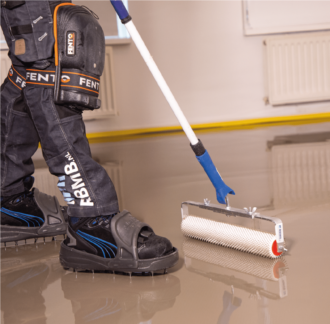 Om de egaline te mixen zijn een een mixer en een mengstaaf vereist. Zorg voor een gelijkmatige verdeling met een vlakspaan, verkrijgbaar in ons gereedschapsassortiment, en ontlucht de laag met een prikroller.