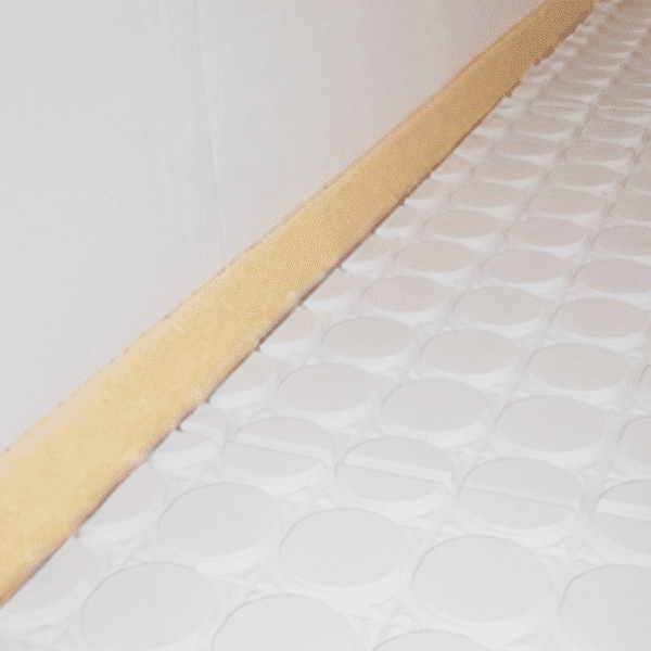 Bij egalisatievloeren dikker dan 3mm is randisolatie essentieel. Door de vrije beweging van de vloer tijdens het krimpen of uitzetten wordt scheurvorming effectief tegengegaan. Deze Randisolatie vloerverwarming is geschikt voor toepassingen tot 25 meter per rol en heeft een zelfklevende rug voor eenvoudige installatie.