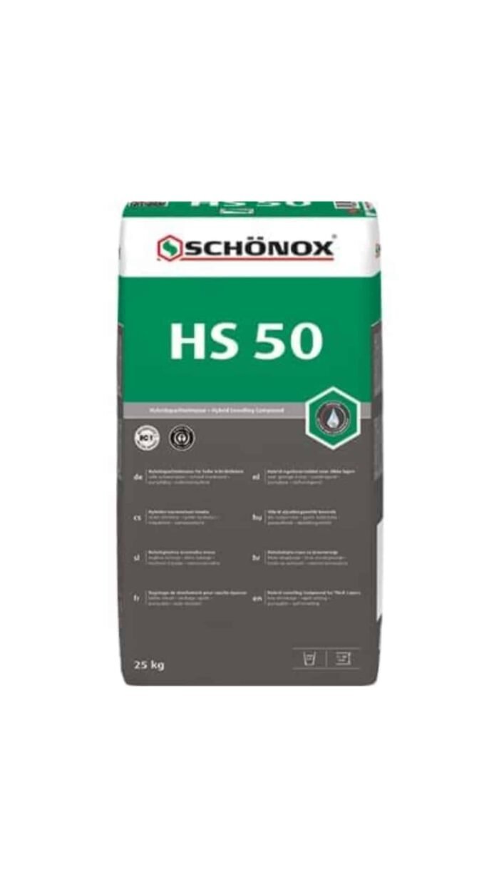 Schönox HS 50 is zeer emissie-arm en dus milieuvriendelijk, ook heeft hij een hoog vermogen om water te binden waardoor hij snel bekleedbaar is. Verder is hij pompbaar, zelfverlopend, bekleedbaar na 48 uur, geschikt voor vloerverwarming en spanningsarm.