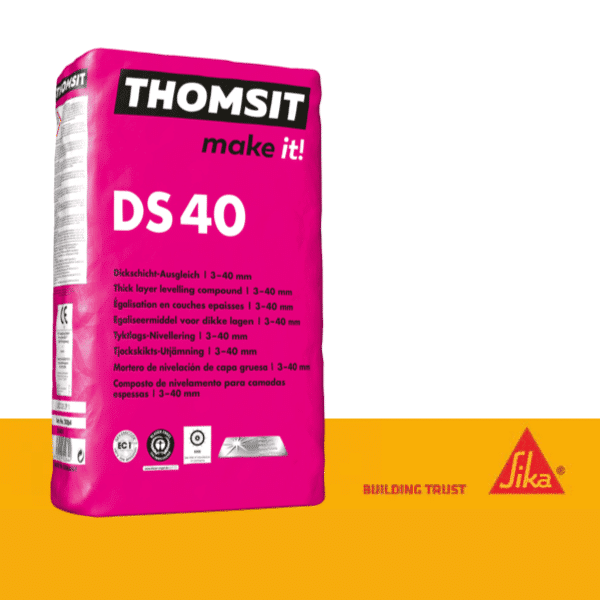 THOMSIT DS 40 is een hoogwaardige cementgebonden egaline die speciaal ontwikkeld is voor dikkere vloernivellering. Met een laagdikte van 3 tot 40 mm is deze egaline perfect voor renovatie én nieuwbouw. Sneldrogend, spanningsarm en uitstekend vloeiend – voor een strak resultaat onder elke vloerbedekking.